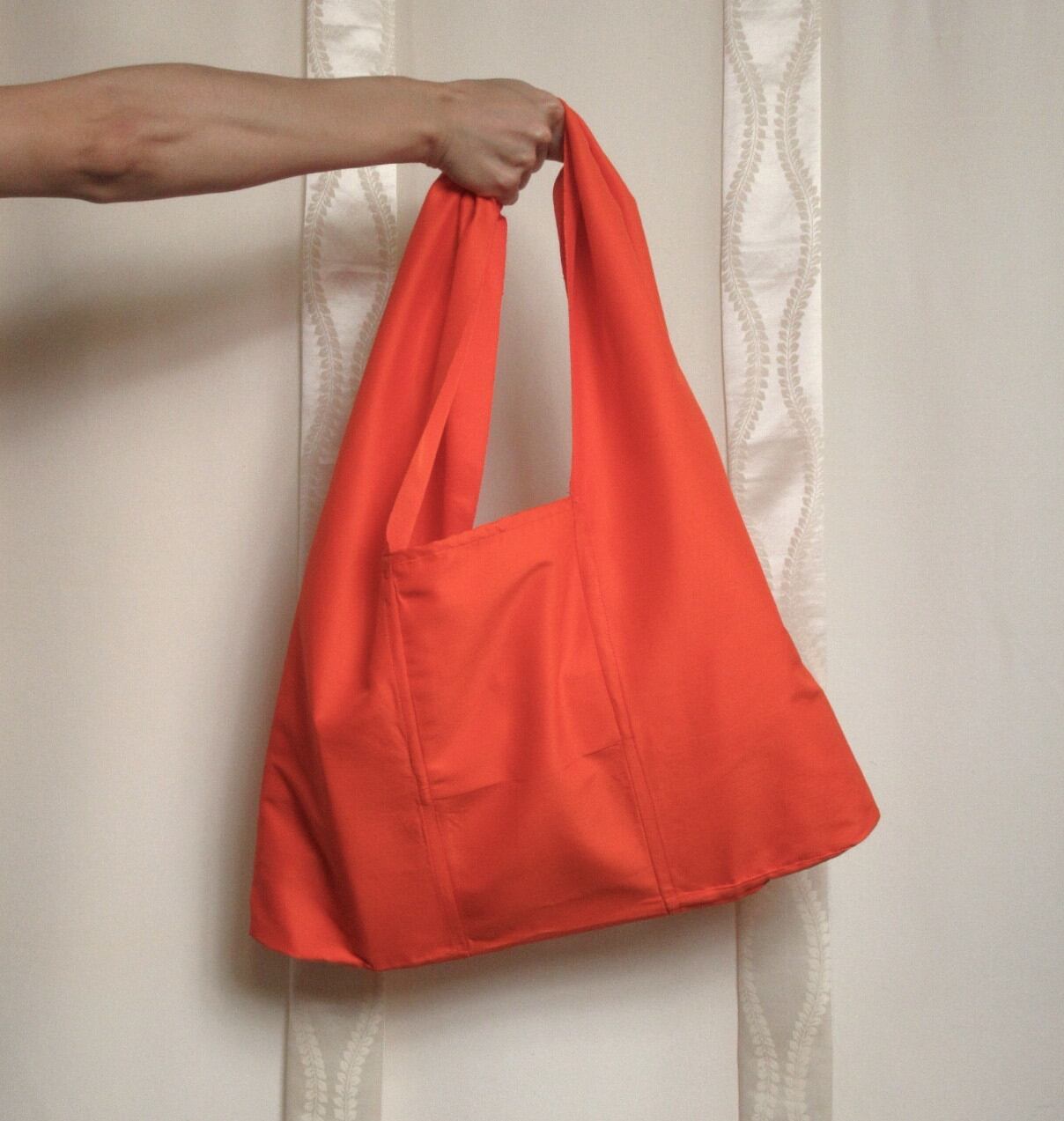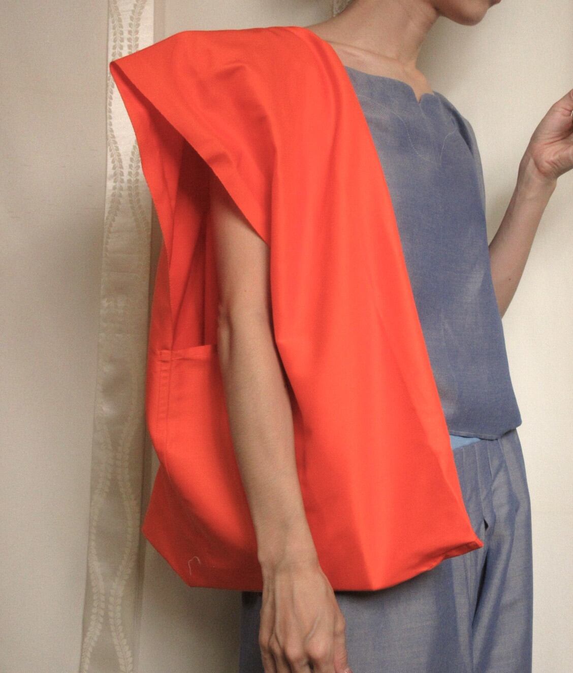 適度な張りがあり、紐部分が太いので、肩にかけると袖のようにも見えます。